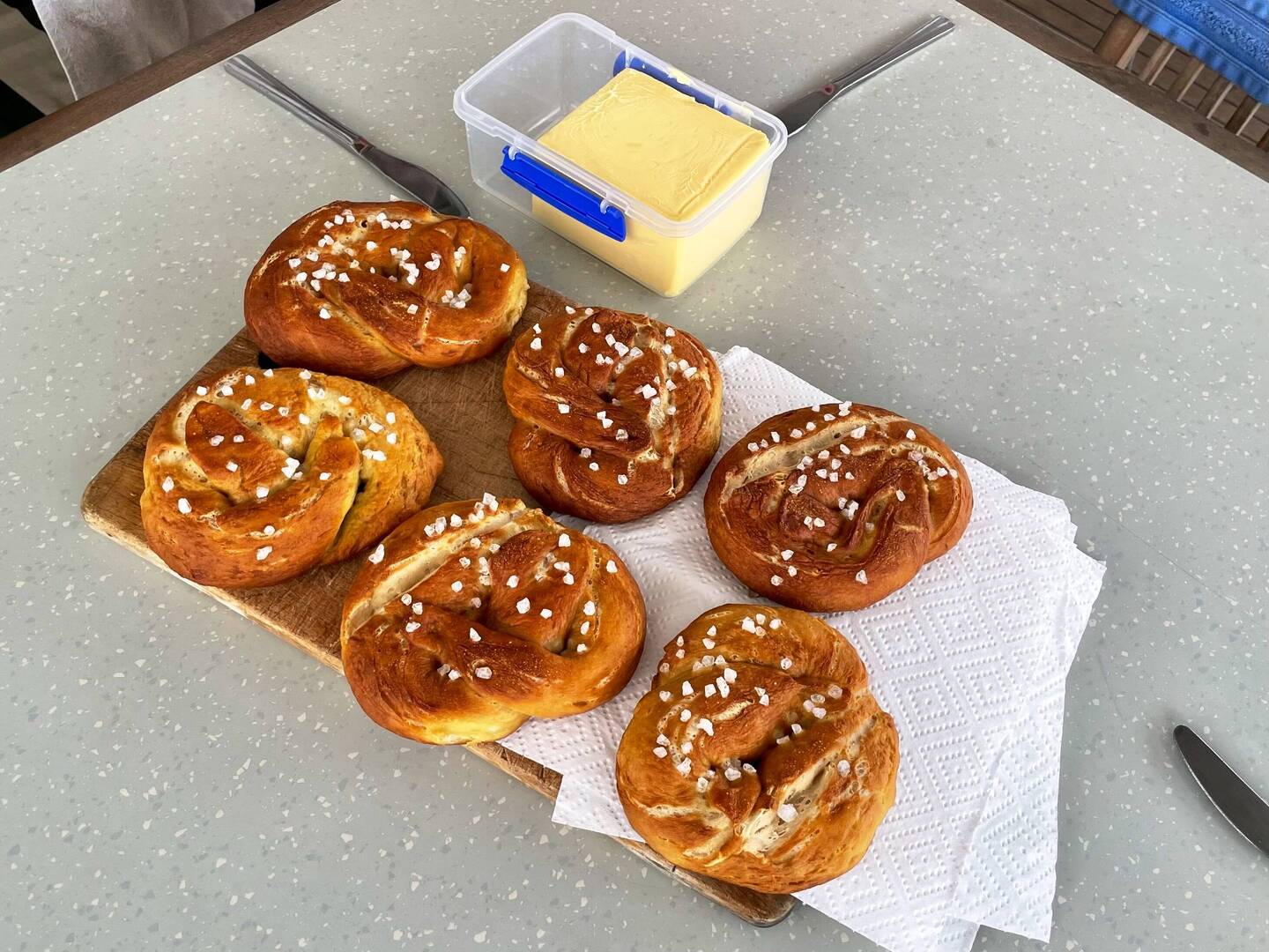Das Frühstück nehmen wir unter Segeln ein und auf dem WegLes mer