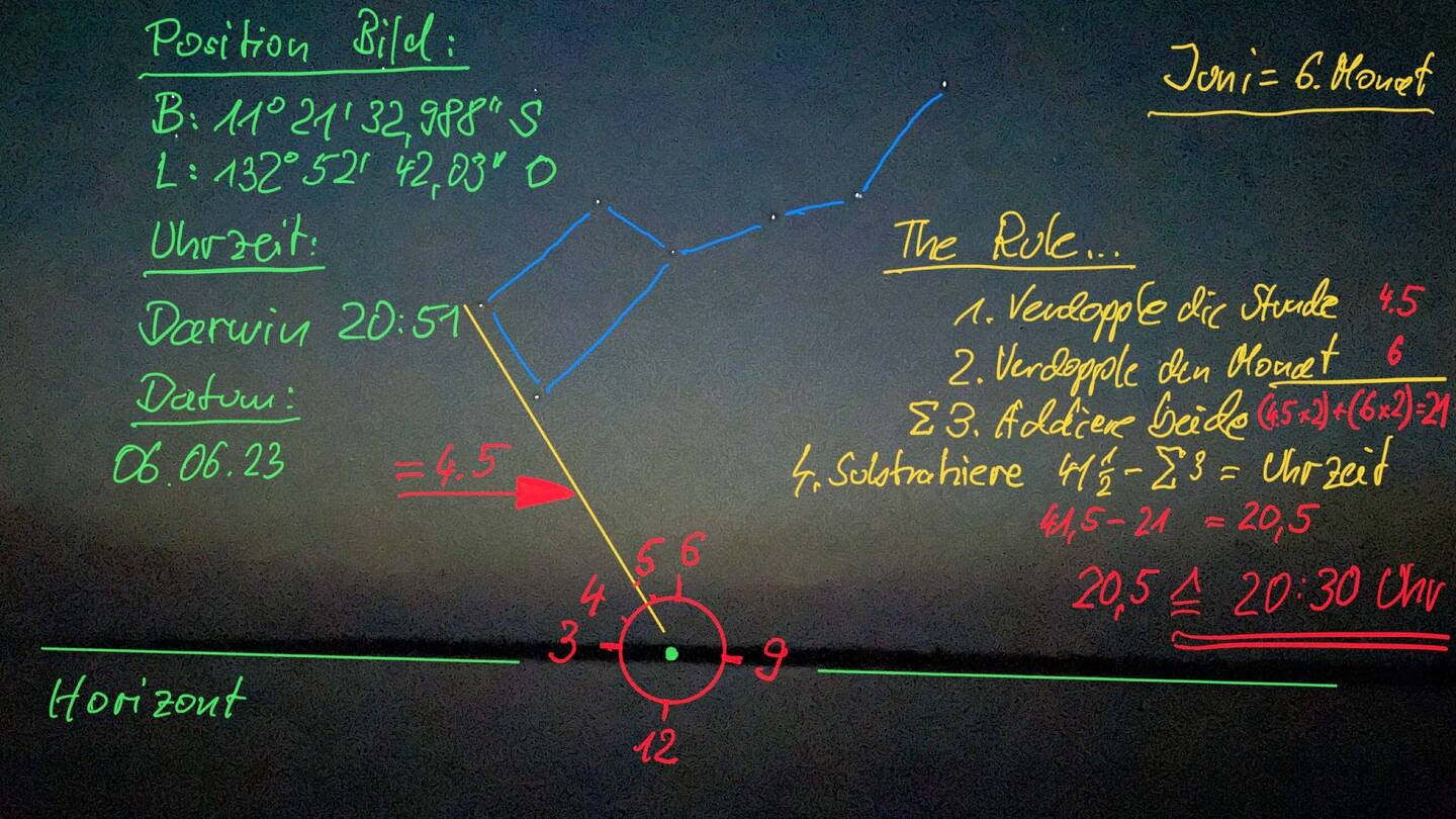 Wie bestimmt man die aktuelle astronomische Zeit anhand des Sternbildes Großer Bär.