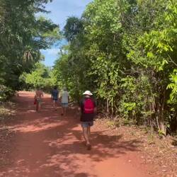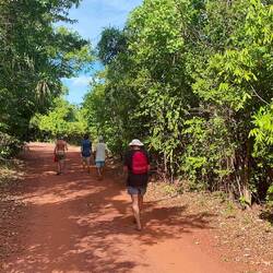 Wir hatten uns am vorherigen Tag schon per Funk beim Ranger Craig angemeldet das wir kommen und gern einen Landgang im Gunak Barlu National Park machen möchten. Craig erteilte grünes Licht und so stapfen wir auf einer Sandpiste einen Kilometer in praller Sonne Richtung bewaldetes Gebiet mit der dort vermuteten Rangerstation.