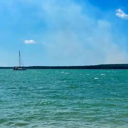 Wir beschließen den ganzen Weg wieder nach Black Point zurückzusegeln, da die Luft durch die Waldbrände zu beißen beginnt und wir nachts hier unruhig Ankern würden.