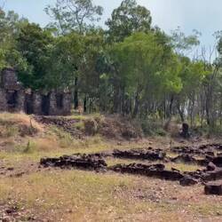 Nach dem Rundgang durchs Camp geht es mit einem Tip von Ranger Craig zurück auf die VAVA-U. Wir sollten uns morgen die Ruinenstadt Victoria Settlement, ungefähr 15sm weiter südlich im Coburg Marine Park, anschauen und dort einen dreistündigen Rundgang auf einem beschilderten Pfad im Busch durchführen. Mit dem allgegenwärtig Hinweis auf giftiges Getier und einem fünf Meter langem Salzwasserkrokodil, dass hinten in der Barrow Bay sein Revier hätte, bringt Craig unseren Puls und Aufmerksamkeit wieder an die Grenze des möglichen und verabschiedet uns herzlich und wünscht uns alles gute.