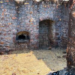 Wir sehen Ruinen der Ortsschmiede, des Quartiermeisters, Kommandantur, Hospital, mehrere Brunnen, Kamine von Wohnhäusern und den Friedhof mit großen Grabern.