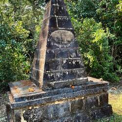 Der Weg durch das Buschland zu den Ruinen ist gut ausgeschildert und wir sind die Einzigen die heute hier die Runde machen. Absolute Stille, nur Blätterrauschen, Vogelgezwitscher und Brandungswellengeräusche begleiten unser Vorwärtskommen durch den Busch. Ein langer Stock kann nicht schaden für eventuell aufkreuzendes Getier und es fühlt sich sicherer an etwas in der Hand zu haben für den Eventualfall.