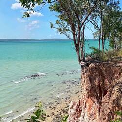 Wir ziehen unsere Seemeilen in türkisfarbenem Wasser entlang an dichten Akazien und Eukalyptuswäldern, die auf leichten Hügeln von 30m Höhe stehen und durch rostrote Steilklippen unterbrochen werden. Danach kommt eine riesige Bucht von 30km Ausdehnung mit herrlichstem Sandstrand die von Mangrovenwäldern eingerahmt wird, in der wir abends Ankern. Von menschlichen Siedlungen ist nichts zu sehen außer hier und da eine Rauchfahne im australischen Busch. Die Sonne brennt im australischen Herbst in der Arafurasee mit 32°C am Nachmittag und der Passatwind blässt seit einem Monat beständig aus Südsüdost mit 12-25kt.