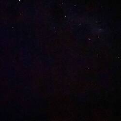Ein letztes Bild vom Sternenhimmel mit Milchstraße und dem Kreuz des Südens. Am Horizont ist schon die Lichtkuppel von Darwin zu erkennen.