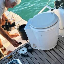 Wir erreichen unsere Ankerbucht hinter Cape Hotham und mit Einbruch der Dunkelheit wird noch schnell die Backbordtoilette repariert, der Ansaugkanal für das Seewasser ist verstopft. Jakob stöpselt unter der Wasserlinie den Eingangsstutzen zu, damit Martin von innen das Ventil mit Pumpe demontieren kann. Die Reparatur macht sich hier in der Bucht bei klarem Wasser besser als in Darwin im Hafenbecken.