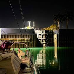 Den gebuchten Liegeplatz innerhalb des Hafenbecken können wir aber noch nicht belegen, weil die Biosecurity vom Northern Territory am heutigen australischen Feiertag Pause hat. Es geht erst morgen weiter mit dem Einreiseprozedere.