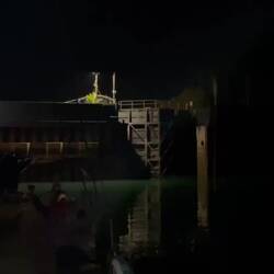 Der Kreuzfahrer setzt Festbeleuchtung und legt ab vom Ashmore Reef mit AIS, die Küstenwache bleibt über Nacht im Reef auf Station.