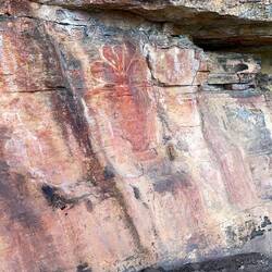 Das Gesehene zu beschreiben ist schwer, die Zeichnungen in den Höhlen und Felsüberhängen im rostroten Sandstein bei gelblichen Licht durch die verdunkelte Sonne ergibt einen einzigartigen Eindruck. Im ganzen Nationalpark brennen natürliche und taktisch gelegte Feuer das Unterholz ab und die Rauchwolken verdunkeln den Himmel gelblich braun.