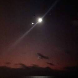 Bei sternenklarer Nacht gibt es ein gleichseitiges Dreieck am Himmel vor der VAVA-U zwischen Venus, Mars und zunehmendem Mond, es sieht aus wie ein UFO.