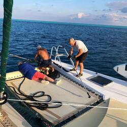 Die windstille Zeit nutzen wir für kleine Reparaturen.