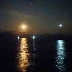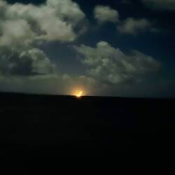Ich habe Nachtwache und achterlich Backbord am Horizont ist ein heller Lichtkegel hinter der Kimm.