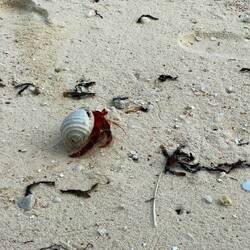 Alle Vögel haben keine Scheu vor den Menschen und lassen uns bis an ihre Nester heran. Der gesamte Uferbereich im Korallensand ist mit Schildkrötennestern gesäumt und jedes verlassene Schneckenhaus in unterschiedlichen Größen ist mit Einsiedlerkrebsen bewohnt.