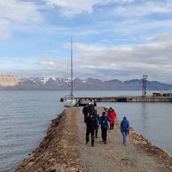 Einlaufen und Festmachen an der nördlichsten Pier mit besiedelter Ortschaft der Welt