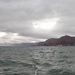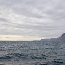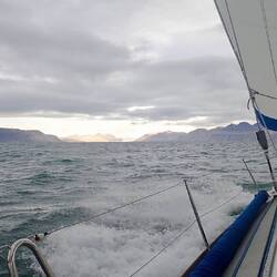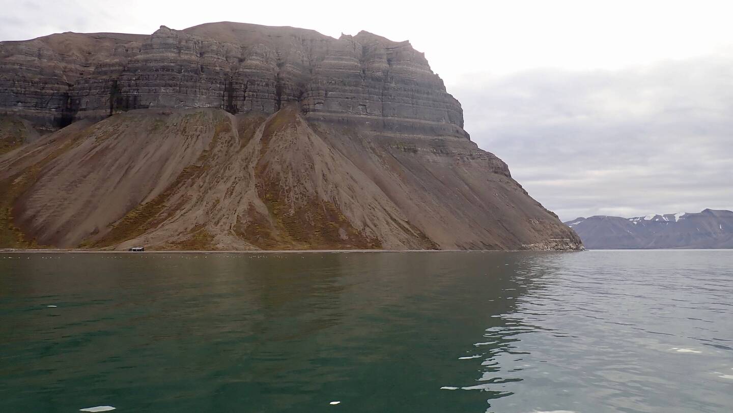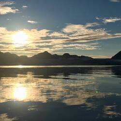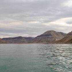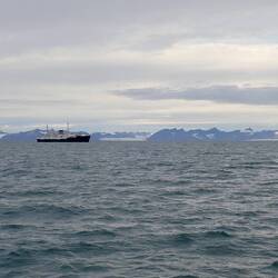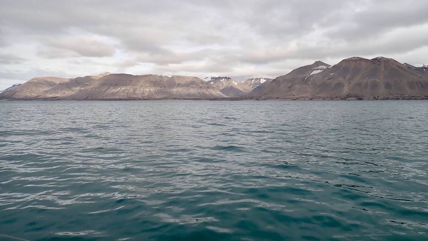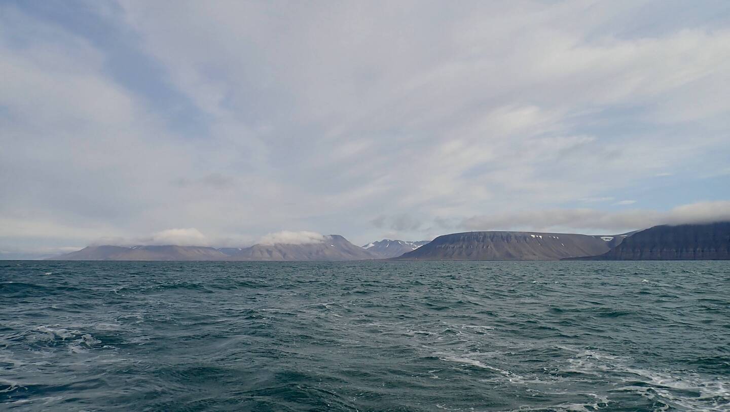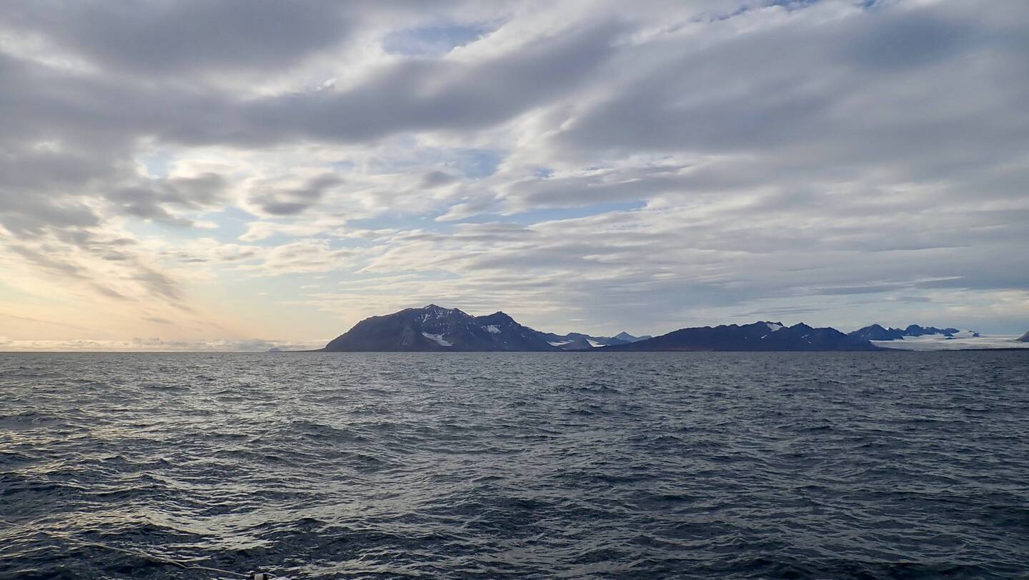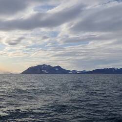 Nach sieben Tagen Überfahrt von Island durch die norwegische See und Grönlandsee ist um neun Uhr abends Spitzbergen in Sicht.