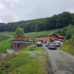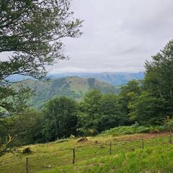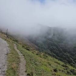 Had foggy, windy mist going over the Pyrenees today. Cows, sheep and horses wander the mountain sides grazing. In the mist, you could hear their bells but not always see them, kind of cool. At one point, a Shepard had his dog bring the flock down around us. We had to stop walking and watch the dog work, pretty amazing.