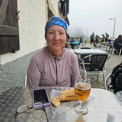 I've caught the crud from Teresa so I went to bed early last night. Started out great and the walk was not bad. As Teresa mentioned, it's mostly up hill into these little villages so getting to our albergue at the end of the day feels good. We drink about 4 cold drinks, take a shower, do laundry and then relax until dinner.