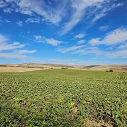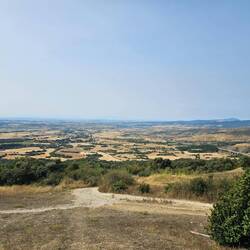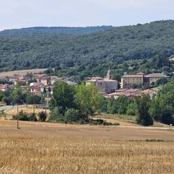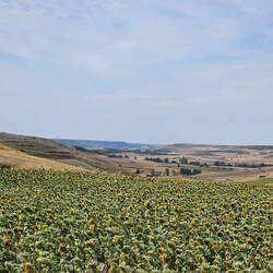 Good day of walking, and once out of the mountains, we dropped back into farmland. However, we don't see the olive, fig, and apple trees along the roadways like we did before . Sunflower fields were the main crops in the fields (besides the grain fields that had been harvested).