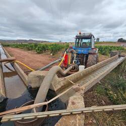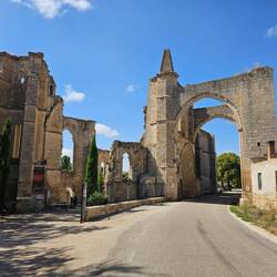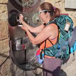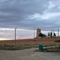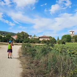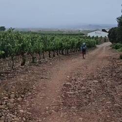 We mostly walked through vineyards today as the landscape is wine country. In a few spots it had a feel of Utah with red rock and desert plants. We came across several aqueduct irrigation systems for the vineyards. At one point they were using a tractors pto to run a pump. Had a scare when Teresa rolled her ankle and hit the ground. She's okay, but we'll see how the ankle is tomorrow.