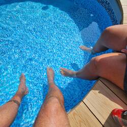 Upon arriving at the albergue, we finished our chores and then soaked our feet in the cold pool. We had a siesta, made a few calls, and then had another pilgrim meal, but this time, there were about 18 people from several different countries. Our first homemade paella of the trip, it was delicious. Hopefully, the rain will end tonight, so tomorrow will be a dry walk day