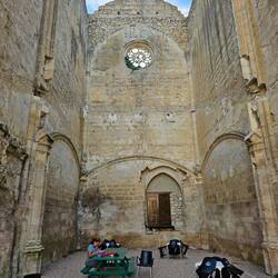 This albergue is in the ruins from an old church and hospital from the 14th century. The current owners wanted it to be a real pilgrims experience. Hence, there is no electricity or hot water, there is a flush toilet...thank god. This is where we met Denise, Loretta, Hannah and Stefan.