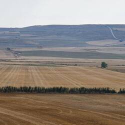Had a good walk today, even with a big hill to climb. They say the Meseta is flat, again a lie. It was 12% grade up and 18% down, but a heck of a view. A couple of the pics show the mountain we went over. It reminded us of Table Rocks, on the top, it plateaued for a bit before the decent.