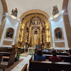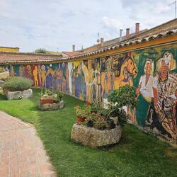 The landscape is changing again, flatter with some rolling hills of farmland. Looked like some fields of alfalfa, which we hadn't seen before. Had a special moment when we stepped into a small church. An older woman who was there invited us in, gave us each a pilgrims blessing, a Mary, mother of god pendent and a hug, then sent us on our way.