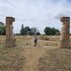 The walk was good, walked through Pamplona past big parks and the university. Once out of the city, it was a climb up to a memorial for the camino and down a steep grade on the other side. It was great walking weather in the morning but heated up in the afternoon.