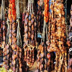 Vom Markt aus gehen Stiegen zum Wasser runter - es wirkt wie ein See, ruhig, beschaulich dort. In der Sonne sitzen und einfach nur schauen und genießen. Die "Steine" am Strand sind vielmehr Unmengen Muschelschalen, Fischkopf- und ganze Fischskelette.