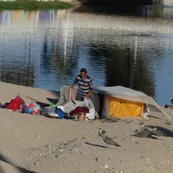 genutzt, die auf Tüchern Kleinigkeiten anbieten. Lustig war ein junger Mann mit einem Korb voller "Schokokuchen" ....