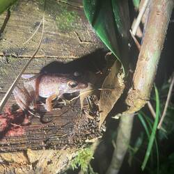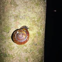 Am Abend regnets nicht mehr und zusammen mit Uwa und Dino gehen wir auf eine Nachttour. Wir wählen den Weg zum Wasserfall. Uwa fängt gleich zu Beginn einen der lauten Grashüpfer. Dino fängt unterwegs zwei Frösche und nimmt sie als Essen mit. Wo die am Ende landen weiss ich nicht, auf dem Teller hatte ich sie nie gesehen. Ich entdecke an einem Stamm fluoreszierende Pilze. Wir schalten alle unsere Stirnlampen aus und bewundern die leuchtenden Pilze. Magisch. Fotografisch lässt sich das Phänomen leider nur schlecht festhalten. Weiter entdecke ich noch einen kleinen lauten Frosch und eine sehr grosse Schnecke. Der Fokus von Uwa ist wohl bei den grossen und den giftigen Tieren. Beides sehen wir leider nicht. Trotzdem war es ein schönes Erlebnis!