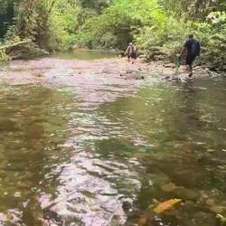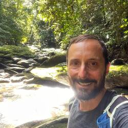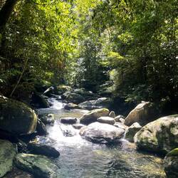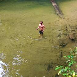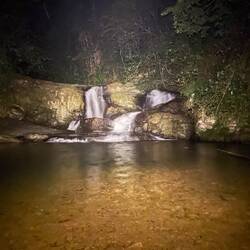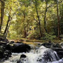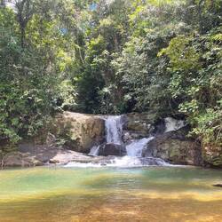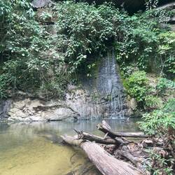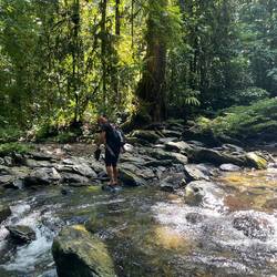 Danach führt uns Dino durch den Regenwald zum nahe gelegenen Wasserfall. Es ist wunderschön hier. Das Wasser klar und erfrischend. Wir baden und erkunden den Bachlauf eine ganze Weile. Paradiesisch! 🤩😍