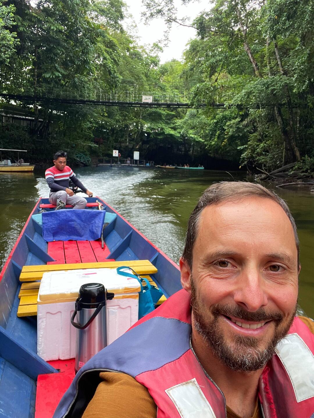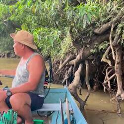Am Nachmittag gehen wir mit Raymond und Dino angeln. Sehr entspannend im Boot umgeben von schönem Regenwald. Mein Haken verfängt sich lieber im Schwemmholz am Boden des Flusses als dass Fische anbeissen. Raymond und Dino fangen je einen Fisch. Raymond fängt sich zusätzlich noch eine Erkältung ein. Die Temperaturen sind auch nur noch knapp über 25 Grad 😊もっと詳しく
