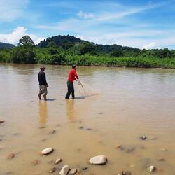 Heute ist mein letzter Tag in Long Iman. Wir fahren nochmals nach Long Lasat. Diesmal schaffen wirs bis zu den tieferen Stellen des Flusses. Hier schnorcheln wir und Dino erbeutet einen kleinen Fisch mit der Harpune 😊 Es ist sehr idyllisch hier. Ein toller Abschluss meines Aufenthalts. Als der Regen einsetzt, gehen wir zurück. Das Mittagessen gibt es diesmal auf dem Feld von Raymond und Marylin. Sie zaubert ein tolles BBQ auf den Tisch. Als sich die Sonne wieder zeigt, besichtigen wir die Felder und helfen beim Gurken ernten.
