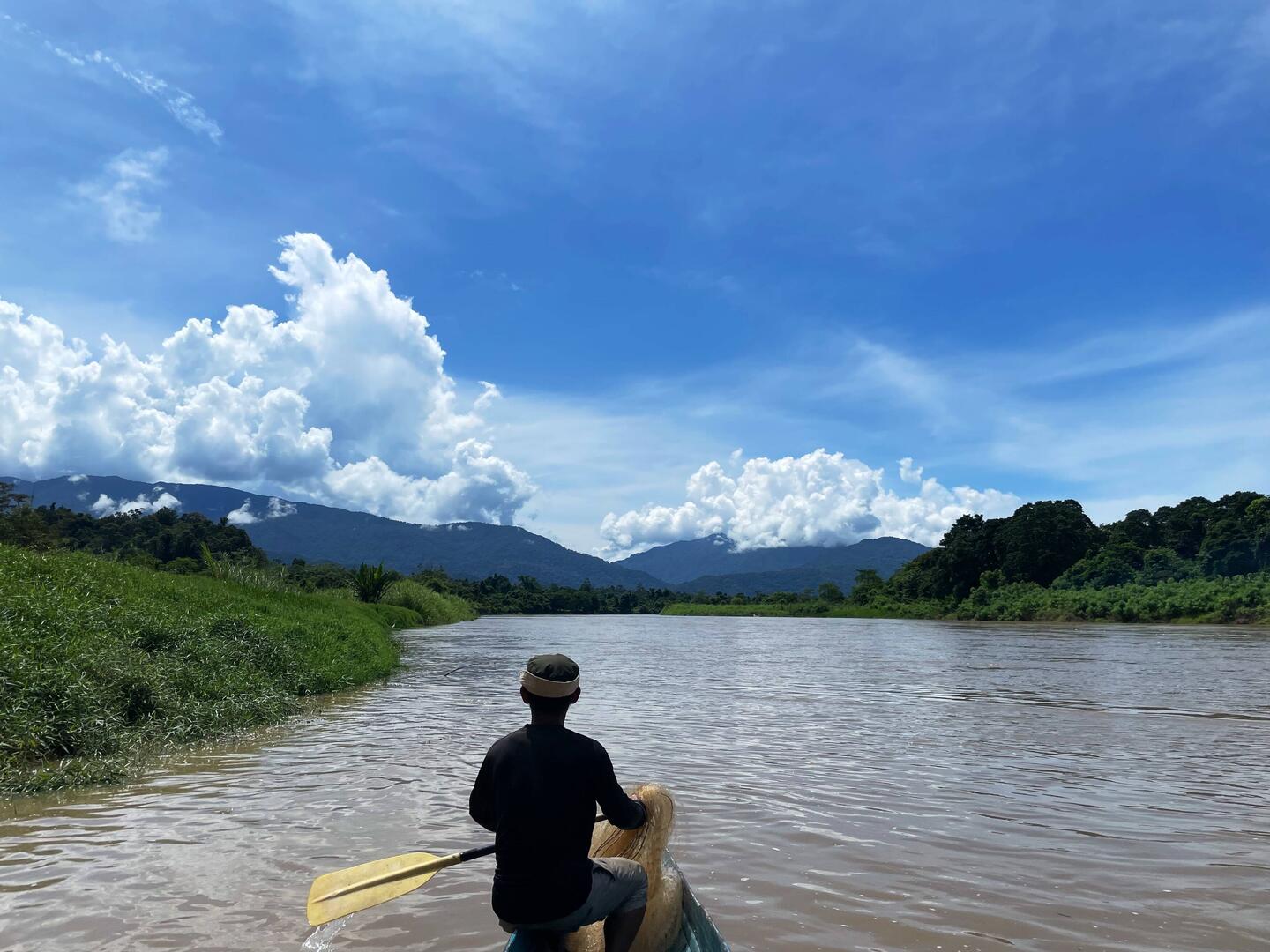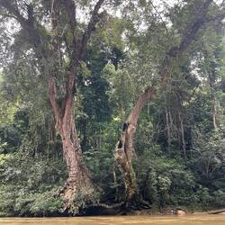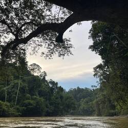 Am späteren Nachmittag fährt uns Raymond mit dem Boot den Fluss aufwärts. Je weiter wir fahren, desto unberührter wird der Regenwald. Bald sind wir von nahezu unberührtem Primärregenwald umgeben. Wow, was für ein Anblick. Mir kommen vor Ehrfurcht die Tränen. Ich hoffe, dieser Wald bleibt von der Abholzung und dem Hunger nach Palmöl verschont. Die Chancen stehen nicht schlecht. Eine Seite befindet sich im Nationalpark und beide Seiten sind sehr steil, sprich für Ölpalmen nicht geeignet.もっと詳しく