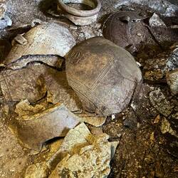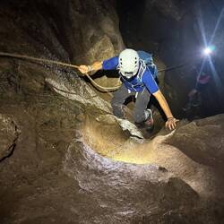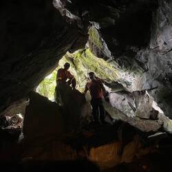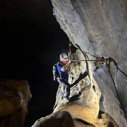Wir erkunden die geräumige Höhle. Es hat viele Fledermäuse. Sie weichen aber gekonnt aus. Ausser bei den schmalen Durchgängen, da kommt es beim durchkriechen zu Beinahe-Kollisionen 😊 Wir finden noch ein paar alte zerbrochene Krüge. Möglicherweise wurden sie zur Aufbewahrung von Knochen verwendet. Philipp fängt noch ein paar Fledermäuse fürs Nachtessen. Än Guete 🫣