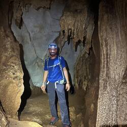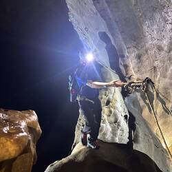 Spinnen hats in jeder Grösse, auch eine Huntsman Spinne die ein Knäuel bewacht, wohl ihre Jungen. Kleine Höhlenkrebse (Blind Cave Crab), Giant Cave Cricket mit sehr langen Fühler, Höhlenskorpione (Tailess Whip Scorpion) und ein äusserst giftiger Hundertfüssler (Long-legged Centipede) sehen wir. Wir sind eine gute und fitte Gruppe und kommen schnell voran. Lustige Sprüche gibts am Laufmeter. Diese Tour ist intermediate Level. Der Guide sagt uns bei der Hälfte, dass er uns ohne Weiteres fürs advanced Level empfehlen kann.