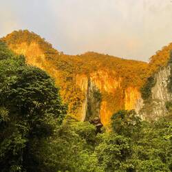 Das gute am Regen ist, dass wir die Lady cave und die Deer cave für uns alleine haben. Die erste ist schön, hebt sich von den anderen aber nicht ab. Die Deer cave besticht durch ihre Dimensionen. Sie besteht aus riesigen Hallen an deren Decken Millionen Fledermäuse hängen. Gross sind dementsprechend auch die Kotberge (Guano). Darin tummeln sich Dungkäfer und Kakerlaken. Wir haben Glück und entdecken eine sehr gut getarnte Schildkröte im Wasser. Einen Frosch und diverse Spinnen und Insekten sehen wir auch. Als wir die Höhle verlassen, betreten die Touristengruppen gerade die Höhle…phu 😊