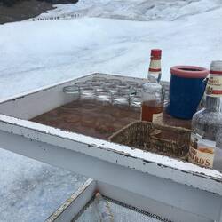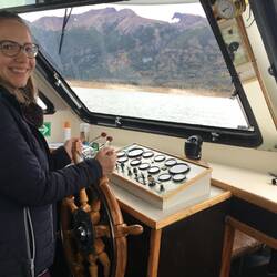 After we arrived on the other side with the ship, we went to a little camp in the hills. There, the guides gave us gloves and hats because the glacier is very cold.