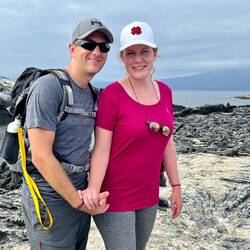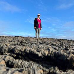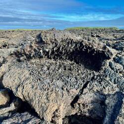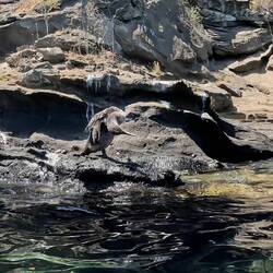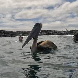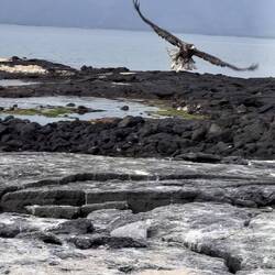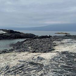Früh morgens (ja, Ausschlafen ist hier nicht angesagt) gehts los auf die Wanderung über das Lava-Feld vom Vulkan Punta Moreno. Auf dem Hinweg mit dem Zodiac können wir den Pelikanen bei derLæs mere