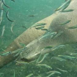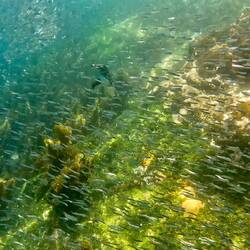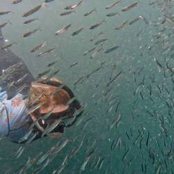 Beim heutigen Tauchgang werden wir wieder von neuen Eindrücken überrascht: Riesige Fischschwärme schwimmen hier. Man sieht deshalb kaum einen Meter weit. Es ist aber wunderschön, darin zuLæs mere