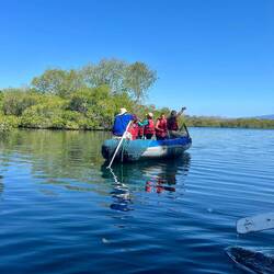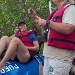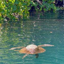Heute geht es für einmal nicht zu Fuss weiter, sondern mit den Zodiacs. Das Ziel ist ein wunderschöner Mangrovenbaum-Kanal. Denn dort ruhen sich viele Schildkröten aus.
