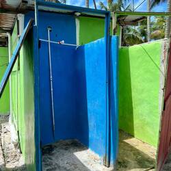 Heute Morgen regnet es sehr stark. Fabian nutzt die Chance und nimmt eine Dusche mit dem frischen Wasser, der nun sauberen Regenrinnen. Wie toll. Frisches Regenwasser ist einfach herrlich. Als derLæs mere