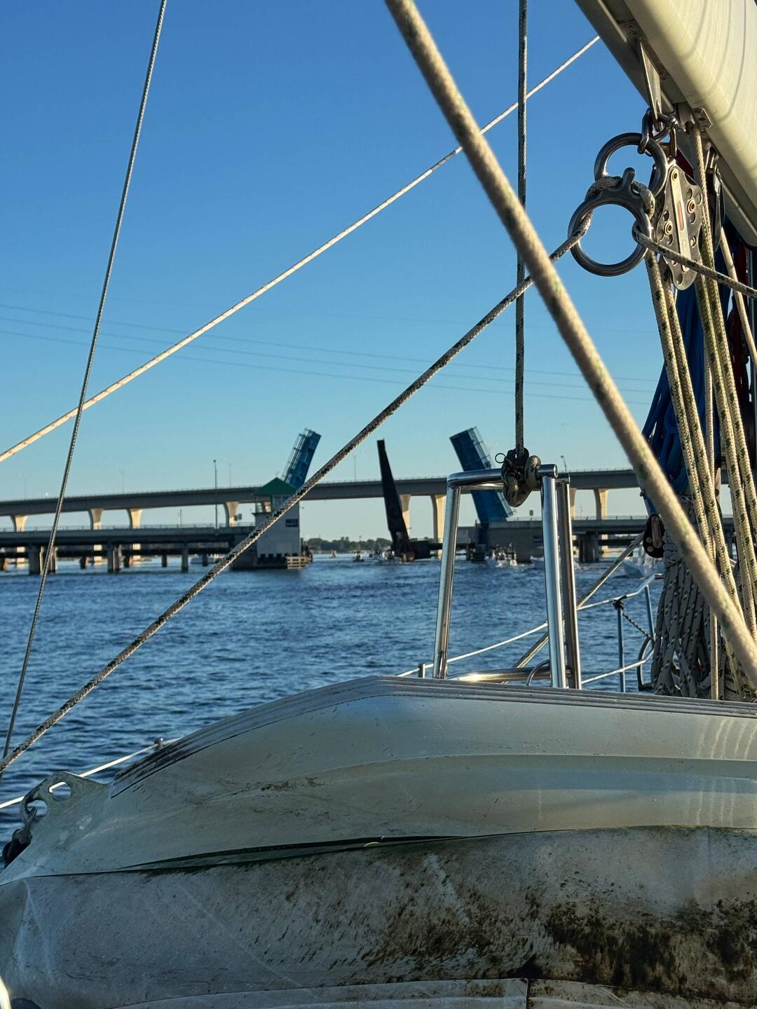 Left our mooring ball at 7 am and waited 45 minutes for the bridge to open—now it begins: 7-10 day voyage, destination, USVI.