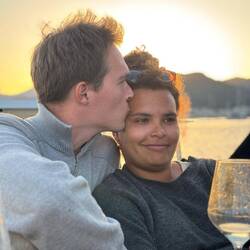 Op het strand verderop is er een feestje gaande, inclusief muziek, maar hebben lekker ons eigen borrel feestje aan boord inclusief het spelletje babbelbox voor tortelduifjes🐦💘🐦. De avonden beginnen hier steeds warmer te worden dus voor we het weten zitten we eerste rang voor een prachtige zonsondergang. Een fantastische afsluiting van een heerlijke dag😍