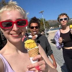 On day two of triple trouble, we sailed a bit before dropping the anchor followed by a relaxed morning. We took the dinghy ashore for a delicious paella, mussels, gambas and patatas bravas lunch. More great conversation, the type you often only have with family, later we were treated with ice cream by Pleun!