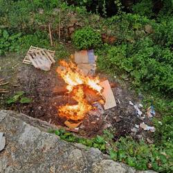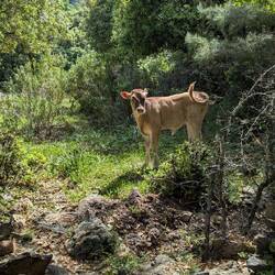 Op de terugweg namen we een andere weg terug, bovenlangs en gedeeltelijk via het "pad van de herder". Heel toepasselijk kwamen we onderweg een kalf met papa en mama tegen. Daarnaast ging Bart terug met een flinke hooikoorts aanval aangezien we eens pad door de bloemen en grassen, oftewel pollen moesten banen.