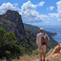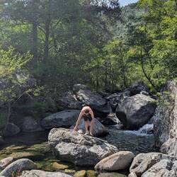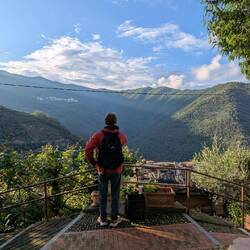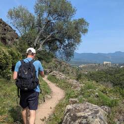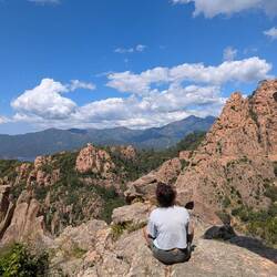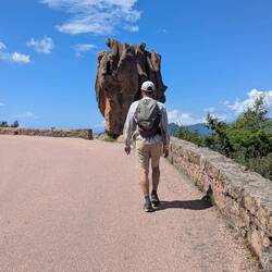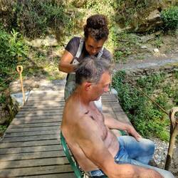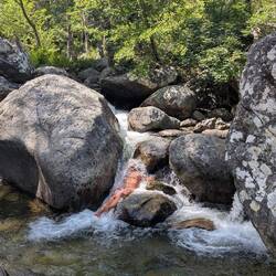 Via the university and the old town, including the citadel, we walked to the Tavignano Valley. Apparently, a glacier once flowed through here; now it’s a lovely rocky river. It was a beautiful day and again quite a strenuous hike, so the temptation to jump into the water was strong. We held off a bit longer, first refilled our water bottles, and Bart inspected the little dam structures made by previous hikers. At a certain point, we reached a deserted stretch of river with a couple of tiny waterfalls. A perfect spot. So, off with the clothes and in for a refreshing dip. So nice to play in fresh water again instead of the salty sea.