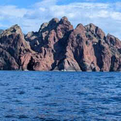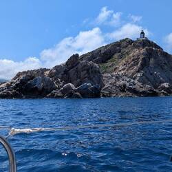 Vanuit Campomoro vertrekken we naar onze voorlopig laatste ankerplek op Corsica. Nouja niet Corsica zelf maar een klein eilandje aan het zuidoostelijke puntje van het grote eiland. Met een heerlijke ruime wind varen we richting onze bestemming. Hoe verder zuidelijk we varen hoe lager de bergen en uiteindelijk de heuvels worden. Vlak voor we de hoek om gaan varen we eerst nog langs Bonifacio. Vanwege de voorspelde wind de komende dagen moeten we deze prachtig op de rand van de kliffen gebouwde stad, voor nu, aan ons voorbij laten gaan. We varen er redelijk ruim voorbij, maar ook van een afstandje ziet het er mooi uit.