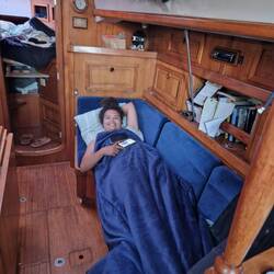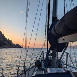 Again we were sailing at 7-8 knots during the day. While at night it calmed down a bit, which was great. Although, now I think about it, it might have been a little calm at some point wind wise. As the waves were still there and when I got ready to relieve Bart from his first night watch, he's a true brother 🤺, it took me a little too long to get ready so when I got on deck, I felt nauseous. Since I try to continue to eat and drink when I feel sick, I fed the fish not once, not twice but 5 times 😅 Let's focus on the fact I felt a lot better afterwards and for the rest of the duration of the trip.
